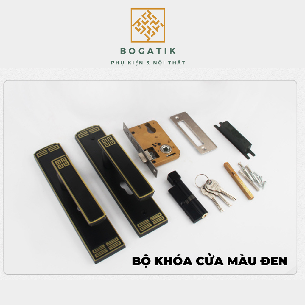 + Bộ khóa đầy đủ bao gồm 2 ốp khóa, thân khóa, chìa khóa, ốc vít.