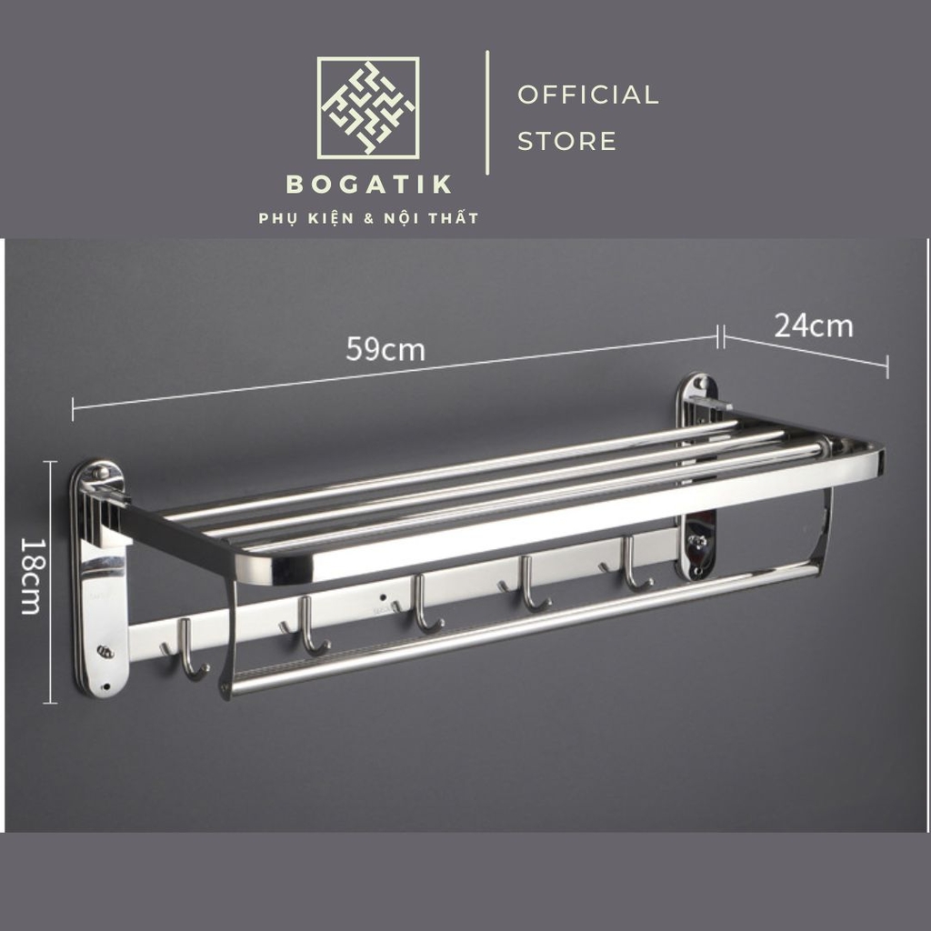 + Giá treo khăn nhà tắm kệ nhà tắm kệ để đồ phòng tắm INOX 304 2 tầng độ bền cao đa năng và tiện lợi do shop Bogatik cung cấp là loại sản phẩm bền đẹp, không bị han gỉ bong tróc sau thời gian dài sử dụng, rất phù hợp với môi trường nhà tắm ẩm ướt. Chất liệu Inox 304 là chất liệu inox cao cấp, mang đến vẻ ngoài đẹp, sang trọng cho sản phẩm, đi kèm với đó là chất lượng luôn được đảm bảo.