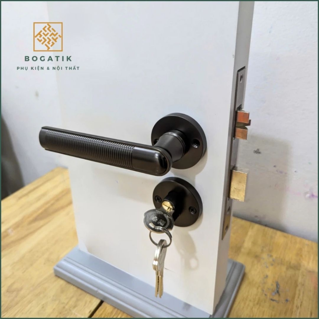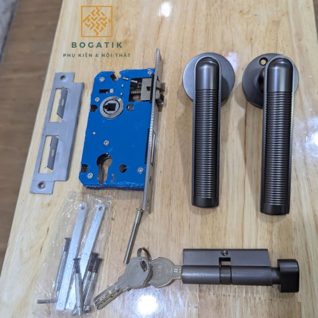+ Bộ khóa đầy đủ bao gồm 2 ốp khóa, thân khóa, chìa khóa, ốc vít.