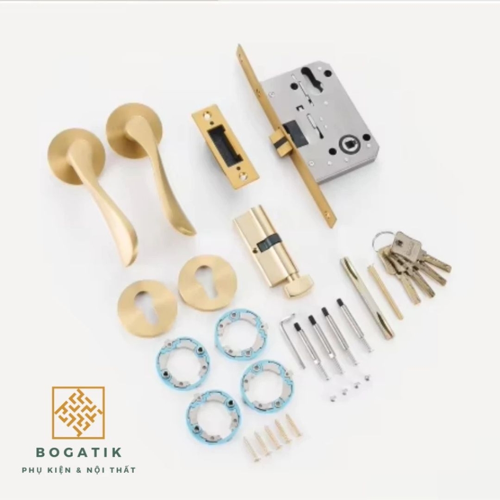 + Bộ khóa đầy đủ bao gồm 2 ốp khóa, thân khóa, chìa khóa, ốc vít,..