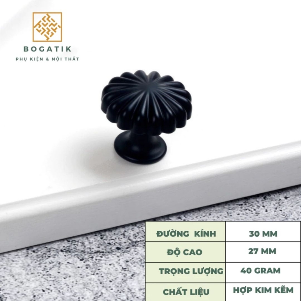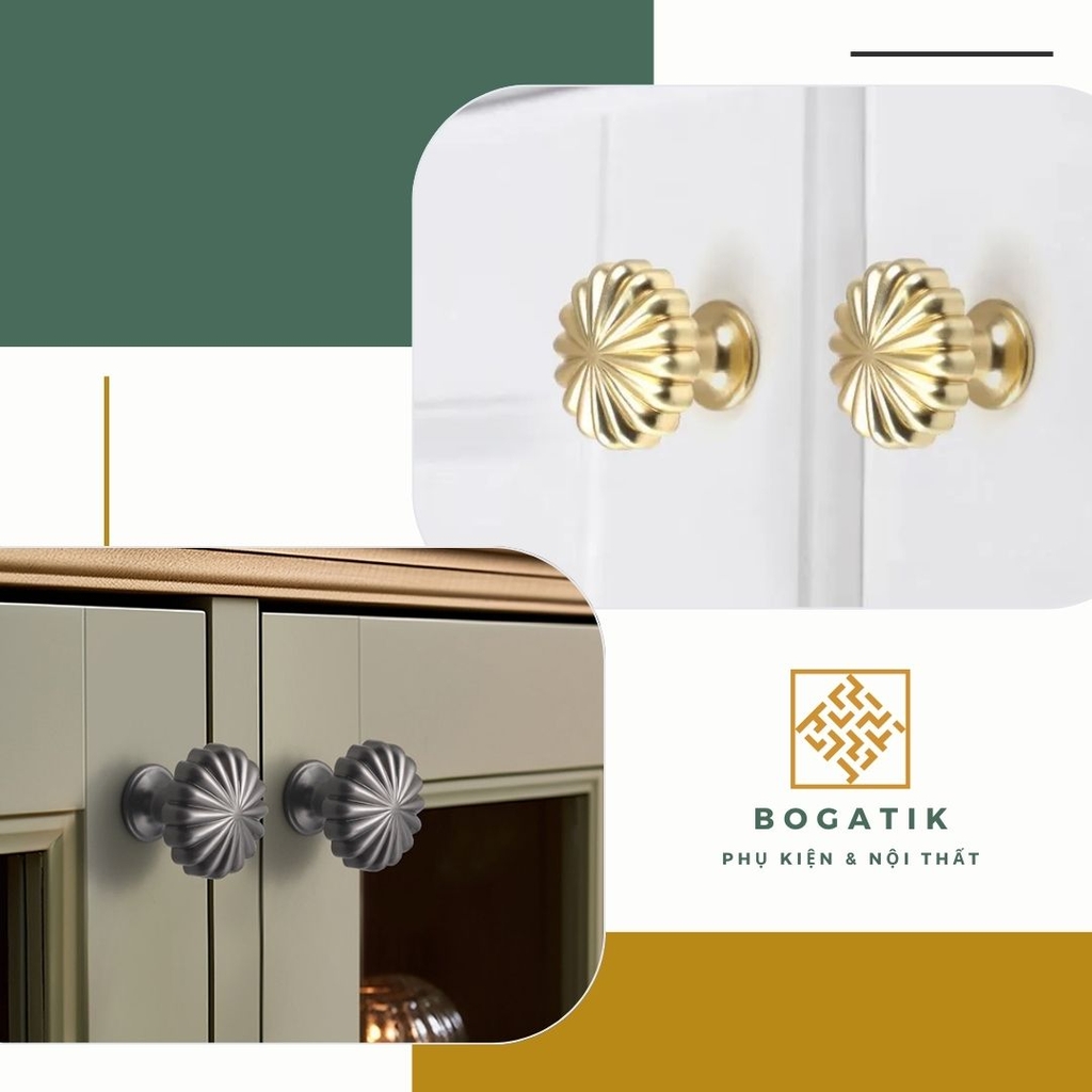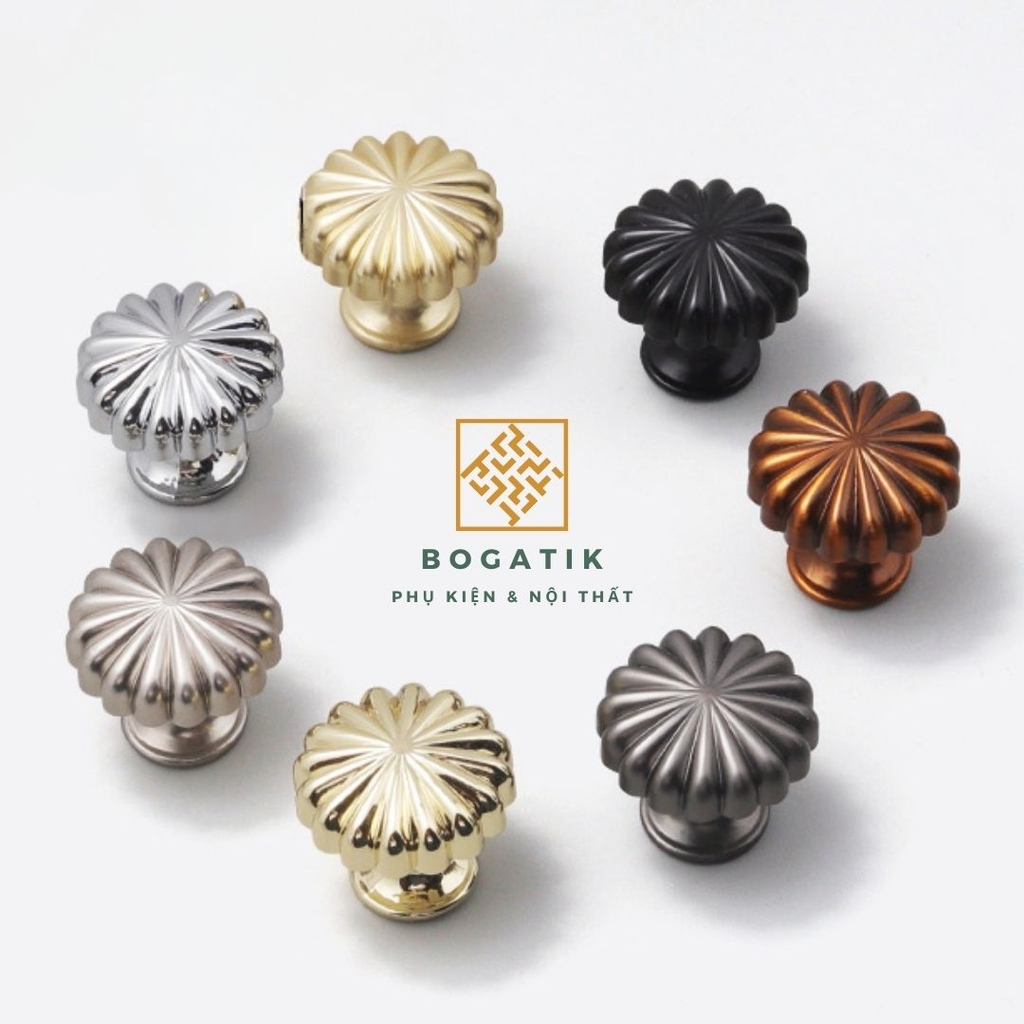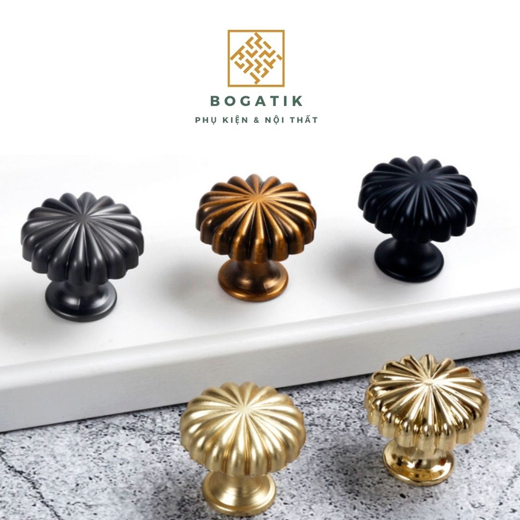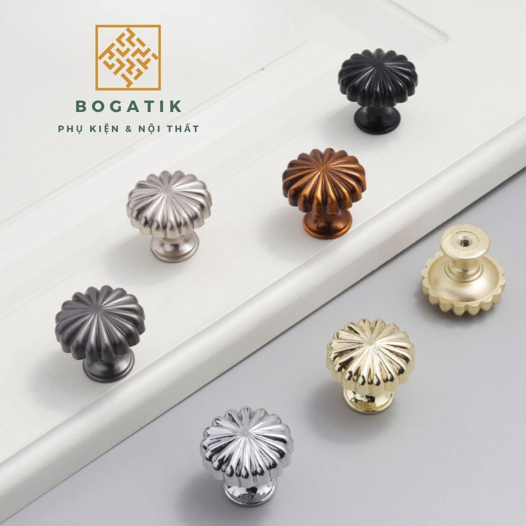 Với thiết kế tròn độc đáo mô phỏng hình quả bí ngô, kết hợp cùng các gam màu sang trọng như vàng kim, đồng, đen, ghi, hay trắng, núm tay BOGATIK dễ dàng phối hợp với nhiều phong cách nội thất – từ cổ điển, tân cổ điển đến hiện đại.