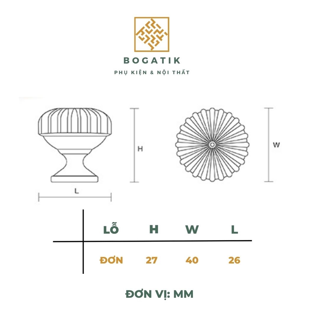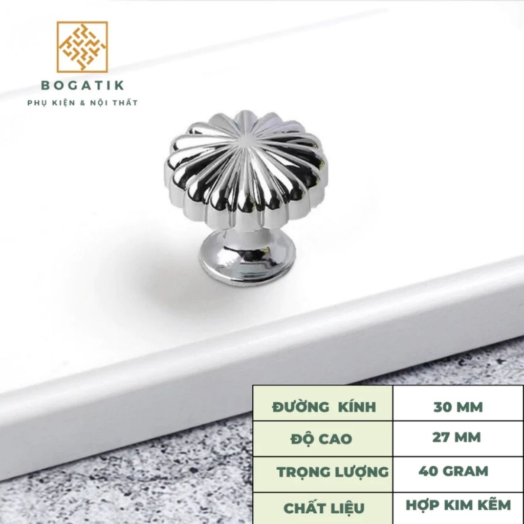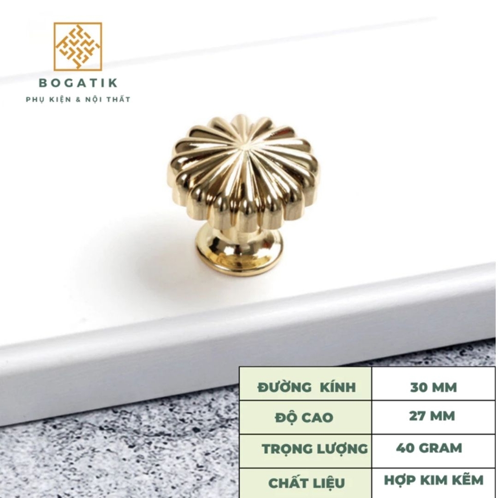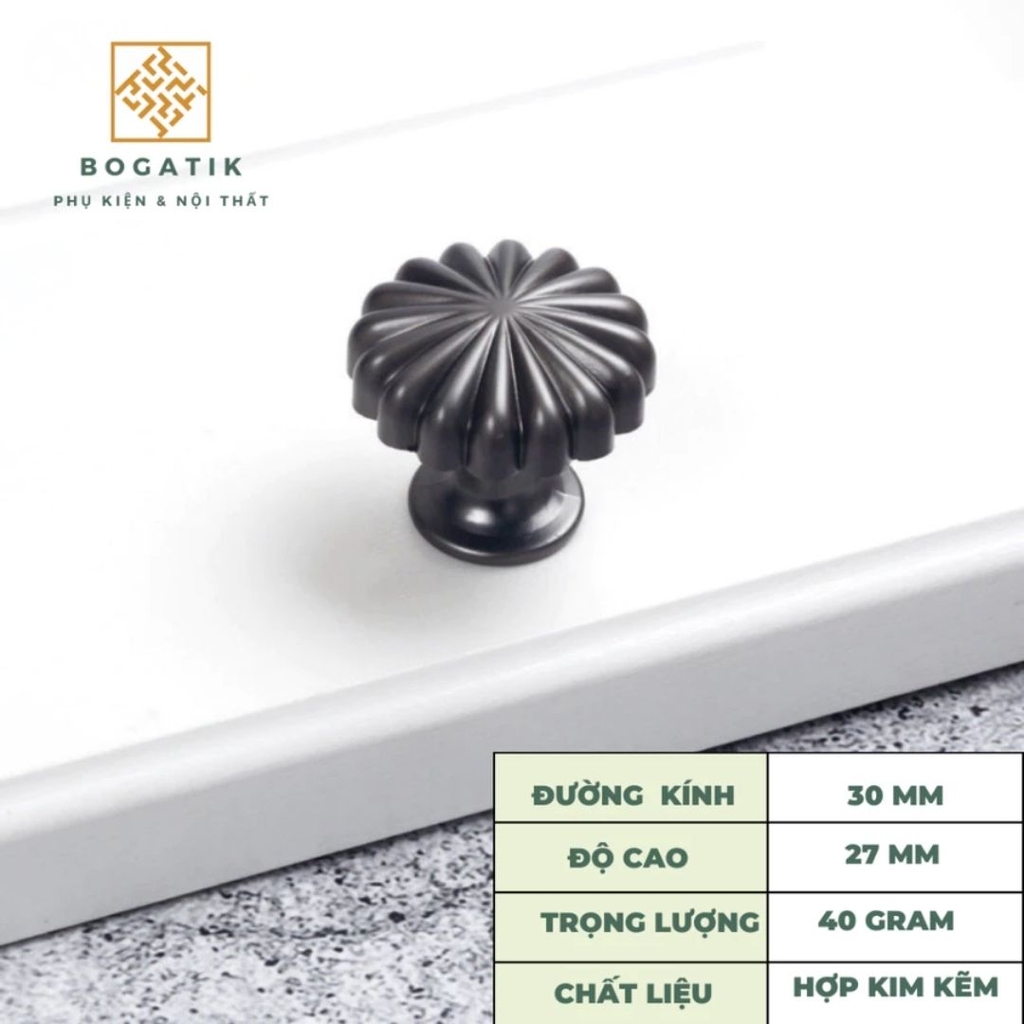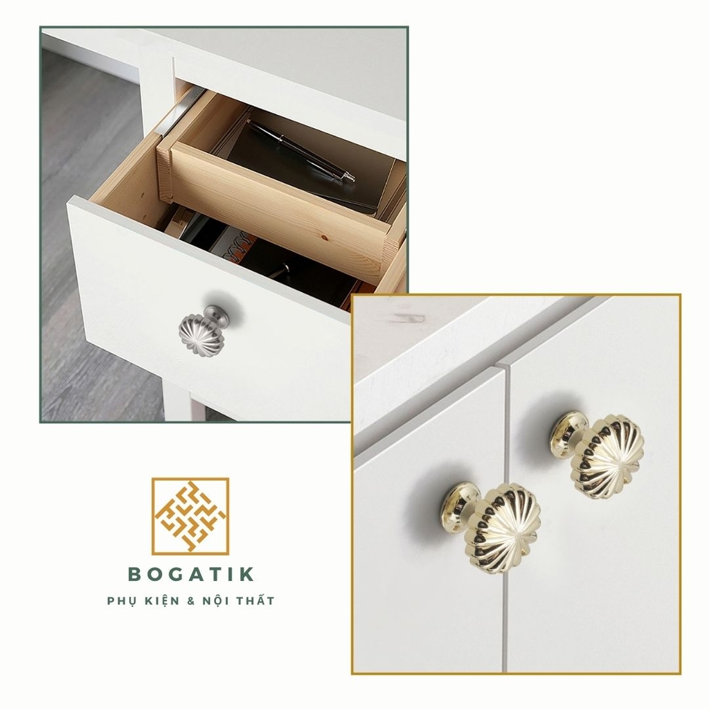 Với thiết kế tròn độc đáo mô phỏng hình quả bí ngô, kết hợp cùng các gam màu sang trọng như vàng kim, đồng, đen, ghi, hay trắng, núm tay BOGATIK dễ dàng phối hợp với nhiều phong cách nội thất – từ cổ điển, tân cổ điển đến hiện đại.