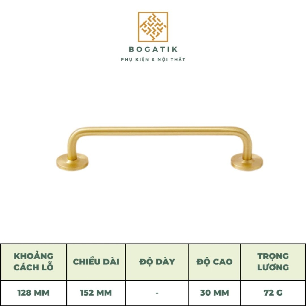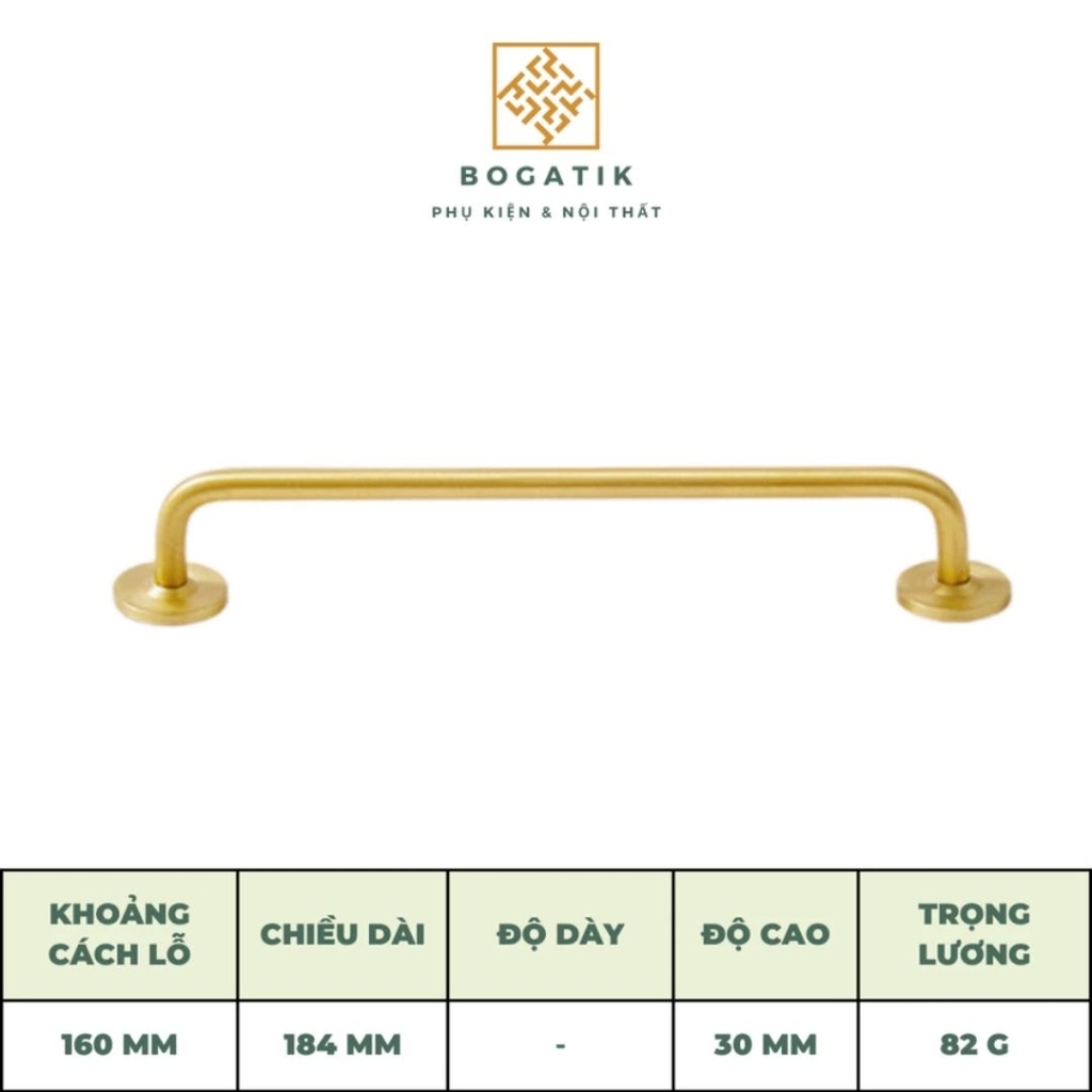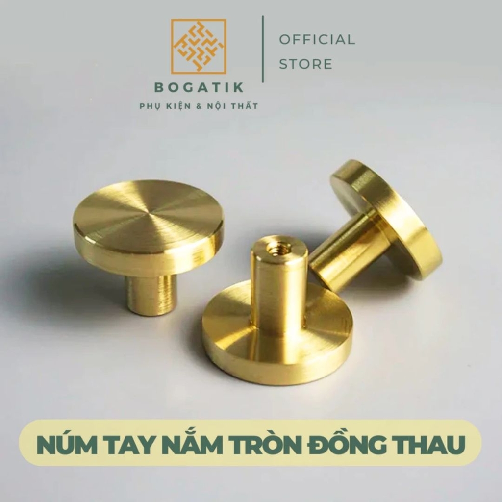 Mang phong cách hiện đại và tinh tế, núm tay nắm tủ tròn BOGATIK được chế tác từ đồng thau nguyên khối đặc ruột, bề mặt hoàn thiện màu vàng đồng sang trọng, chống oxy hóa, không hoen gỉ và luôn giữ độ sáng đẹp tự nhiên theo thời gian.