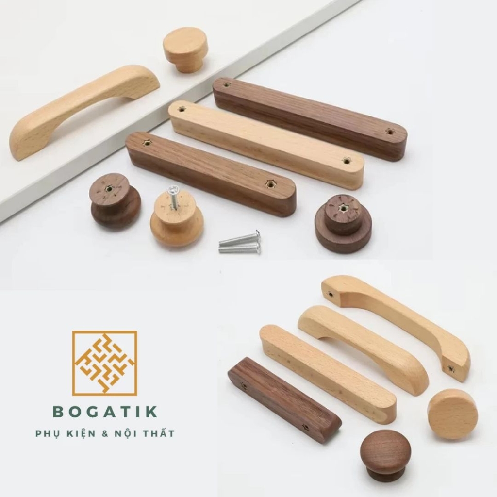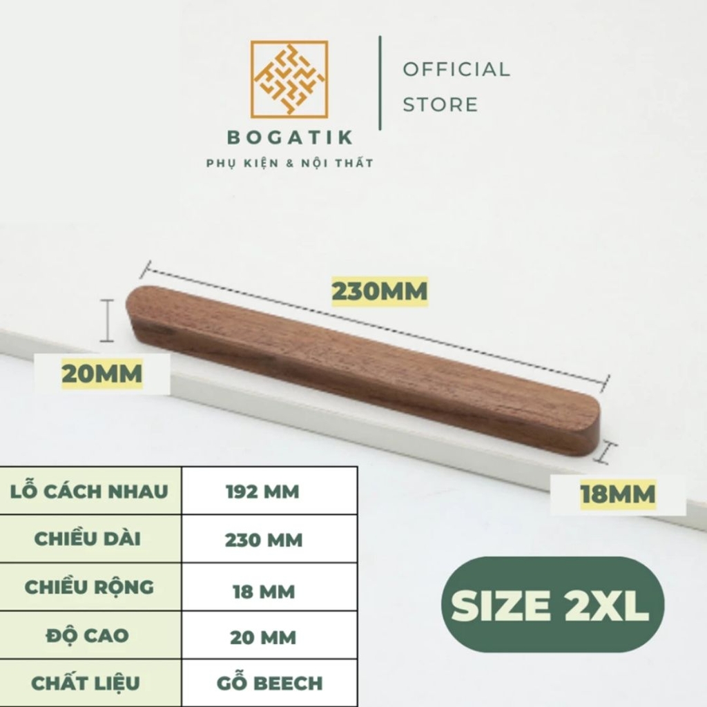 Tay nắm tủ – ngăn kéo BOGATIK được chế tác từ gỗ Beech tự nhiên cao cấp, màu nâu trầm sang trọng, phù hợp với nhiều phong cách nội thất hiện đại, tối giản hoặc tân cổ điển.
