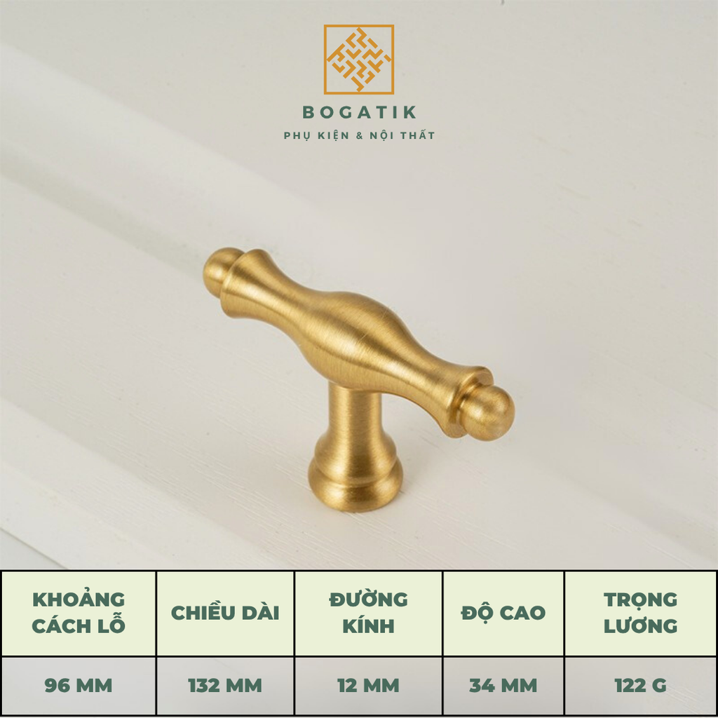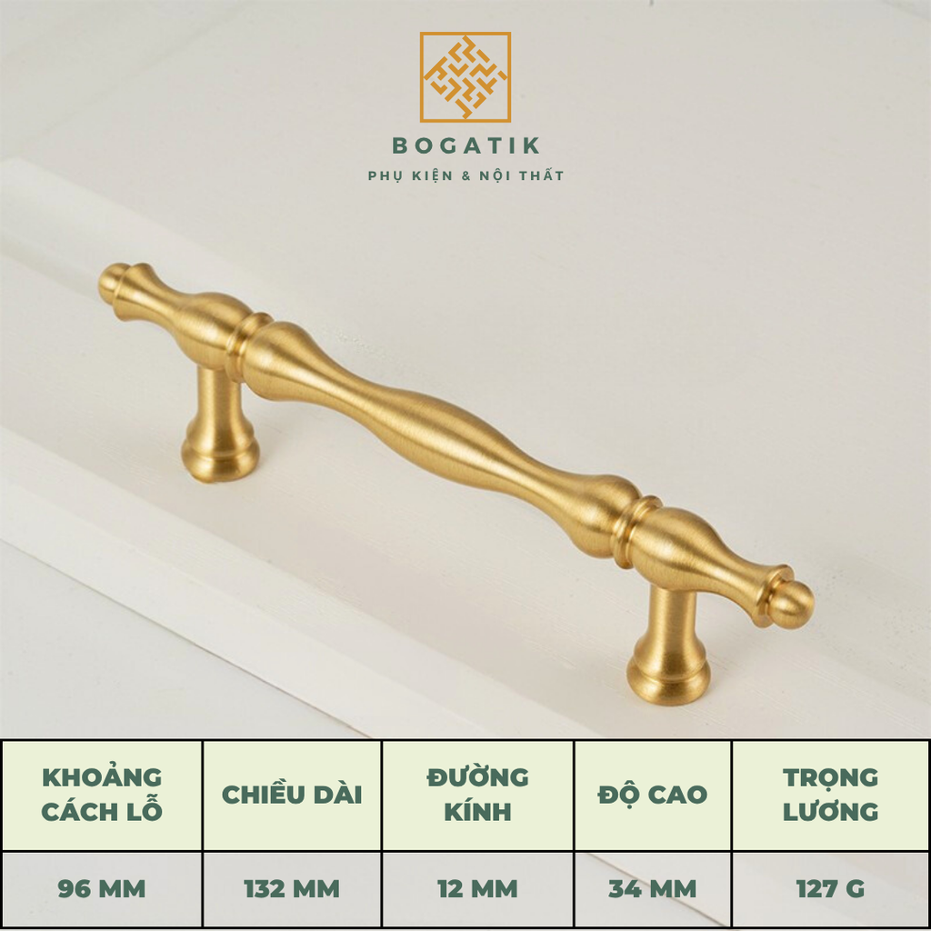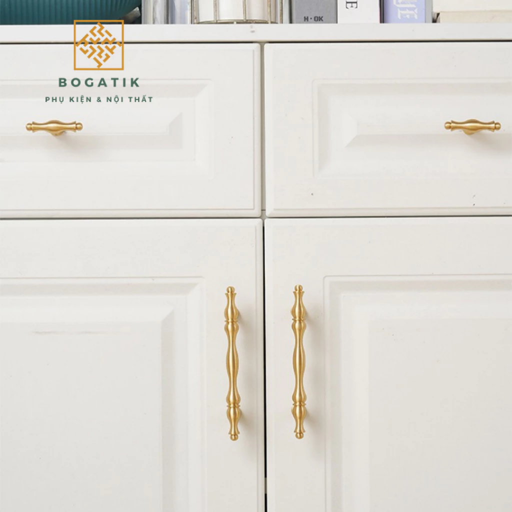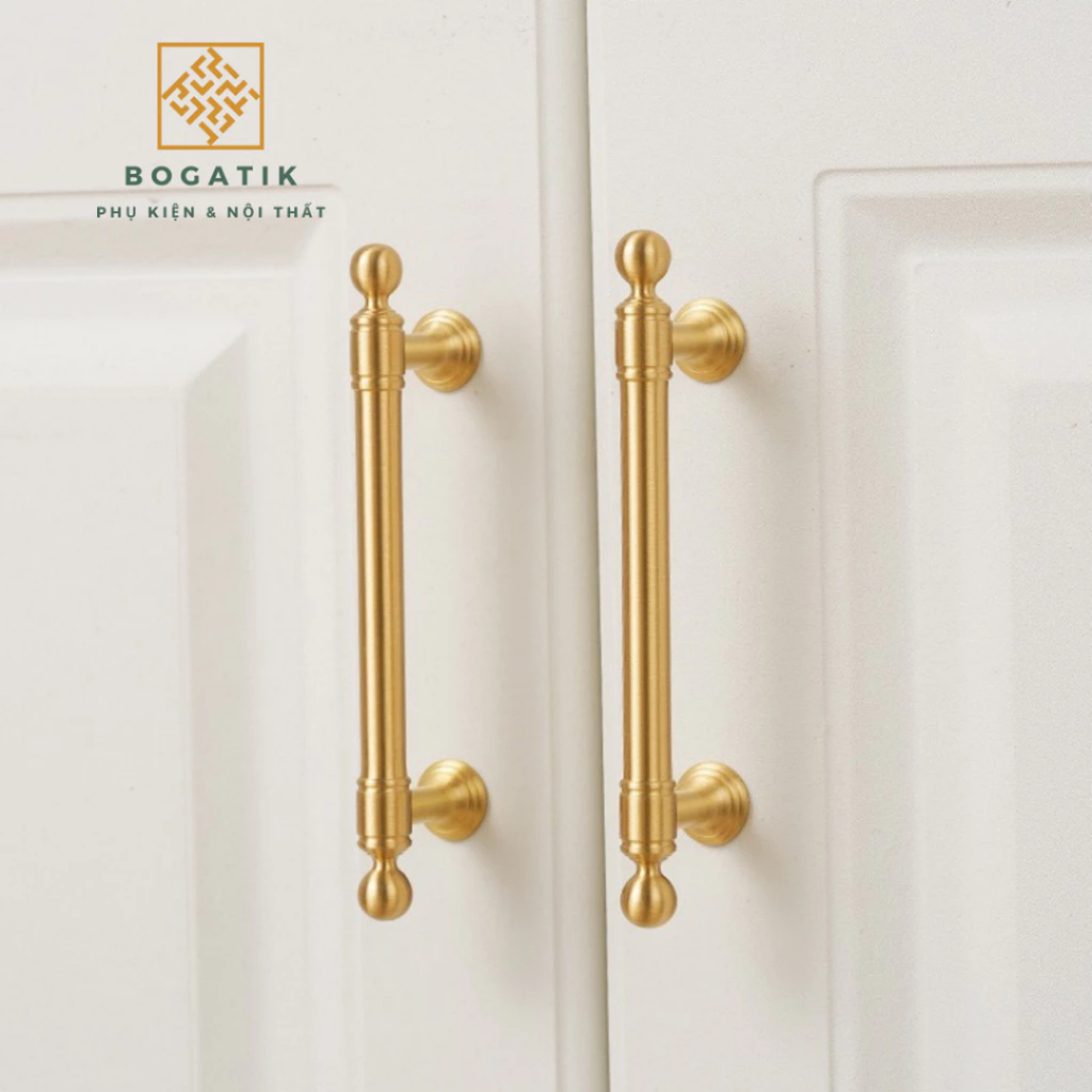 Mang đậm phong cách sang trọng và hiện đại, tay nắm tủ – tay nắm tủ bếp BOGATIK được chế tác từ đồng thau nguyên khối cao cấp, bề mặt hoàn thiện màu đồng xước mờ (satin brass) tinh tế, chống oxy hóa – chống bám vân tay – giữ màu bền đẹp theo thời gian.