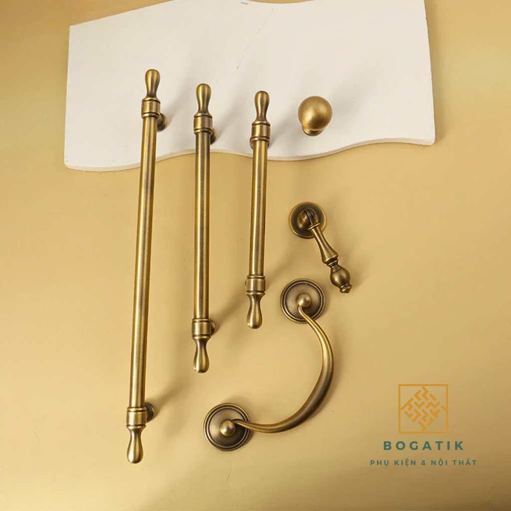 - Tay nắm cửa tủ ngăn kéo màu vintage, giả cổ, antique của shop Bogatik là bộ tay nắm được chế tạo từ hợp kim kẽm đáp ứng các kích thước khác nhau của tủ quần áo/ ngăn kéo các loại.