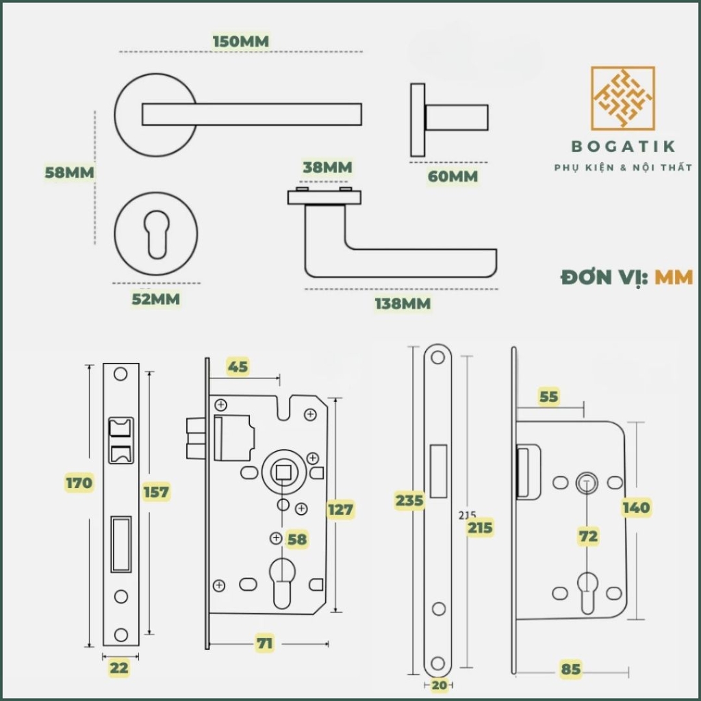 THÔNG SỐ ĐO LƯỜNG CỦA KHÓA CỬA: