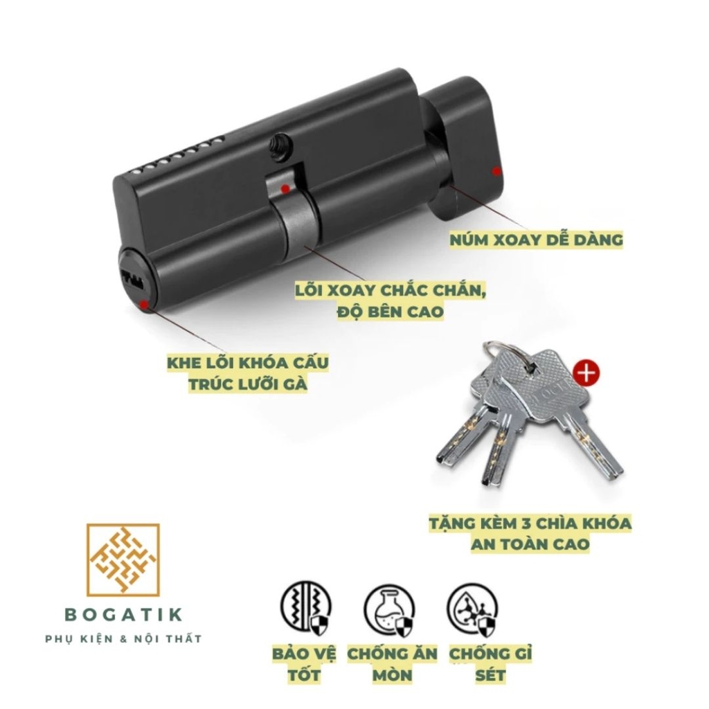 + Chất liệu lõi khóa: đồng mạ nhôm.