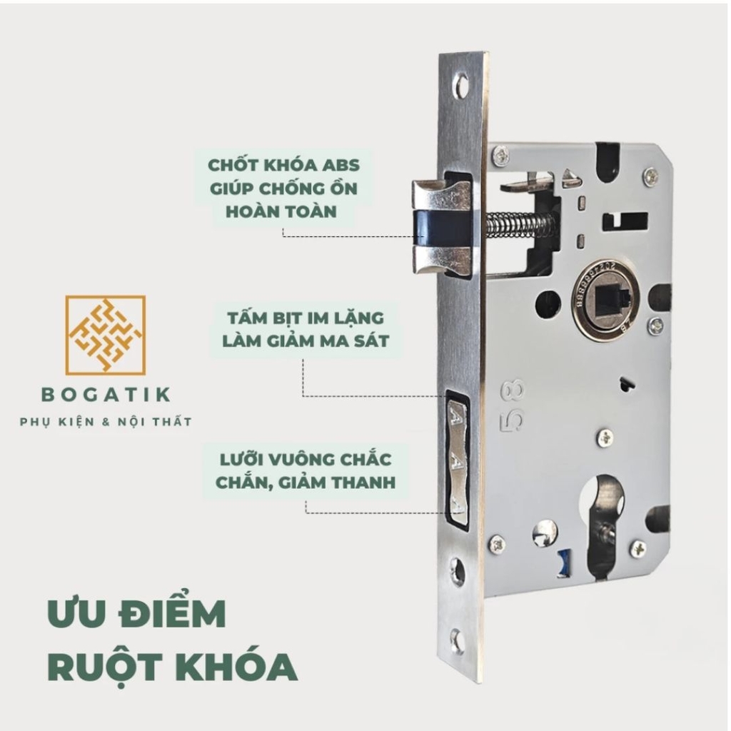 + Bộ khóa đầy đủ bao gồm 2 ốp khóa, thân khóa, chìa khóa, ốc vít,..